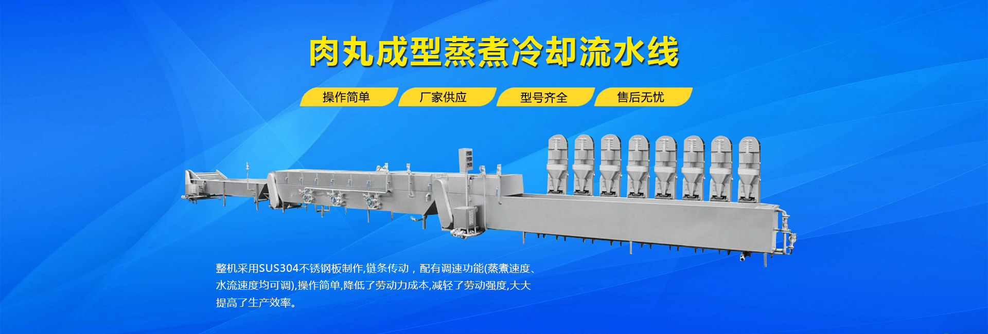 公司主要生產(chǎn)不銹鋼制品食品機(jī)械:各種規(guī)格型號(hào)真空滾揉機(jī)、制冷滾揉機(jī)、提升機(jī)、電加熱夾層鍋、肉丸機(jī)、真空攪拌機(jī)、絞肉機(jī)、灌腸機(jī)、打卡機(jī)、線(xiàn)扎機(jī)、斬拌機(jī)、鹽水注射機(jī)、煙熏爐、油炸機(jī)、巴氏殺菌線(xiàn)、連續(xù)油炸線(xiàn)、肉丸成型水煮線(xiàn)、醬鹵生產(chǎn)線(xiàn)、肉丸破碎機(jī)、真空包裝機(jī)、洗袋風(fēng)干機(jī)、豬頭劈半機(jī)、不銹鋼火腿模具、肉斗車(chē)、案桌、煙熏車(chē)、屠宰類(lèi)機(jī)械設(shè)備、清洗風(fēng)干設(shè)備、肉類(lèi)解凍設(shè)備、滾筒拌料機(jī)等。產(chǎn)品廣泛適用于火腿腸、肉丸、肉串、鹵制品、海產(chǎn)品、禽類(lèi)深加工、油炸、泡椒風(fēng)味、速凍水餃、魚(yú)豆腐、千葉豆腐、豆腐干、牛肉干、牛排雞排類(lèi)、禽蛋、麻辣、休閑、水果蔬菜清洗、中央廚房、餐飲連鎖、寵物食品等食品生產(chǎn)。