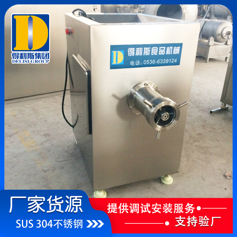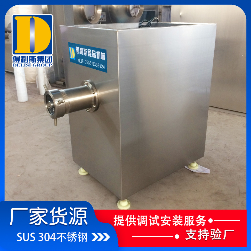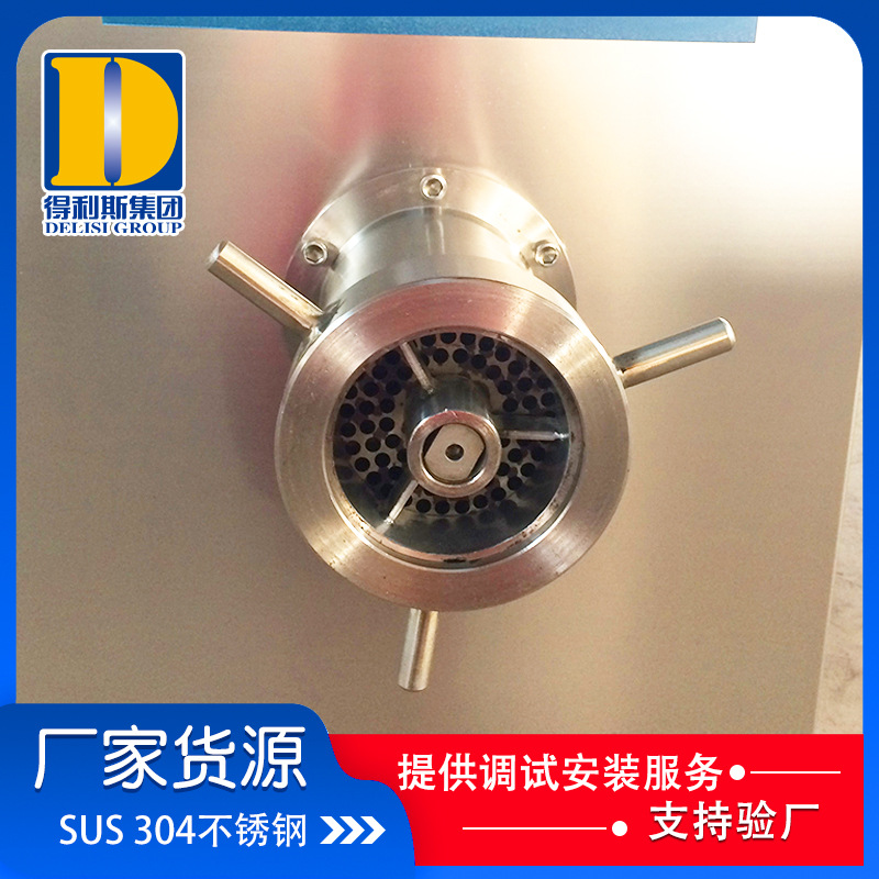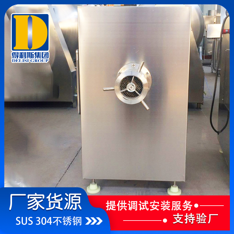 3、凍肉絞肉機是肉制品生產(chǎn)行業(yè)中通用性高使用范圍廣的種肉食加工設(shè)備。它是依靠螺旋桿將料斗箱中的原料肉推到預(yù)切板處,通過螺桿的旋轉(zhuǎn)擠壓使用孔板與鉸刀產(chǎn)生相對運轉(zhuǎn),從而將原料肉切成顆粒塊狀,確保了肉餡的均勻性。