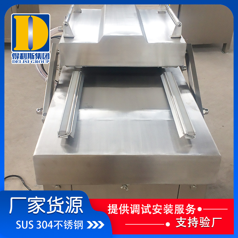 全不銹鋼SUS304材質(zhì)5mm真空室超厚鋼板,8mm真空室底板,不變形進口PLC可編程邏輯控制器外置旋片式真空泵技術(shù),低噪音設(shè)計配置中德合資V100型真空泵。(抽氣速度100m3/小時)